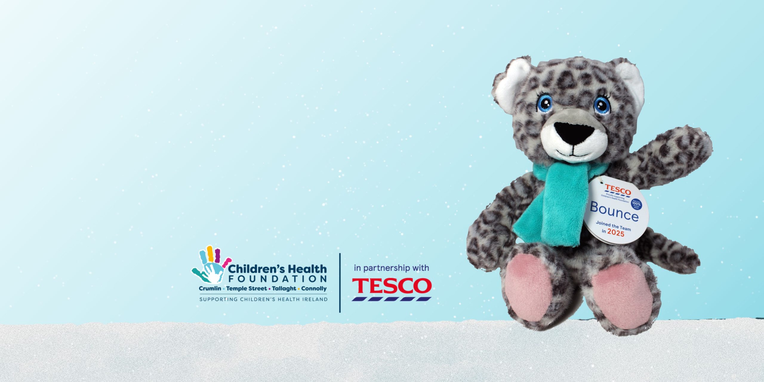 Meet Bounce the Snow Leopard, Tesco’s new Christmas cuddly toy made from 100% recycled materials. Help save a smile this Christmas by supporting the Children’s Health Foundation and bringing comfort to sick children and their families.